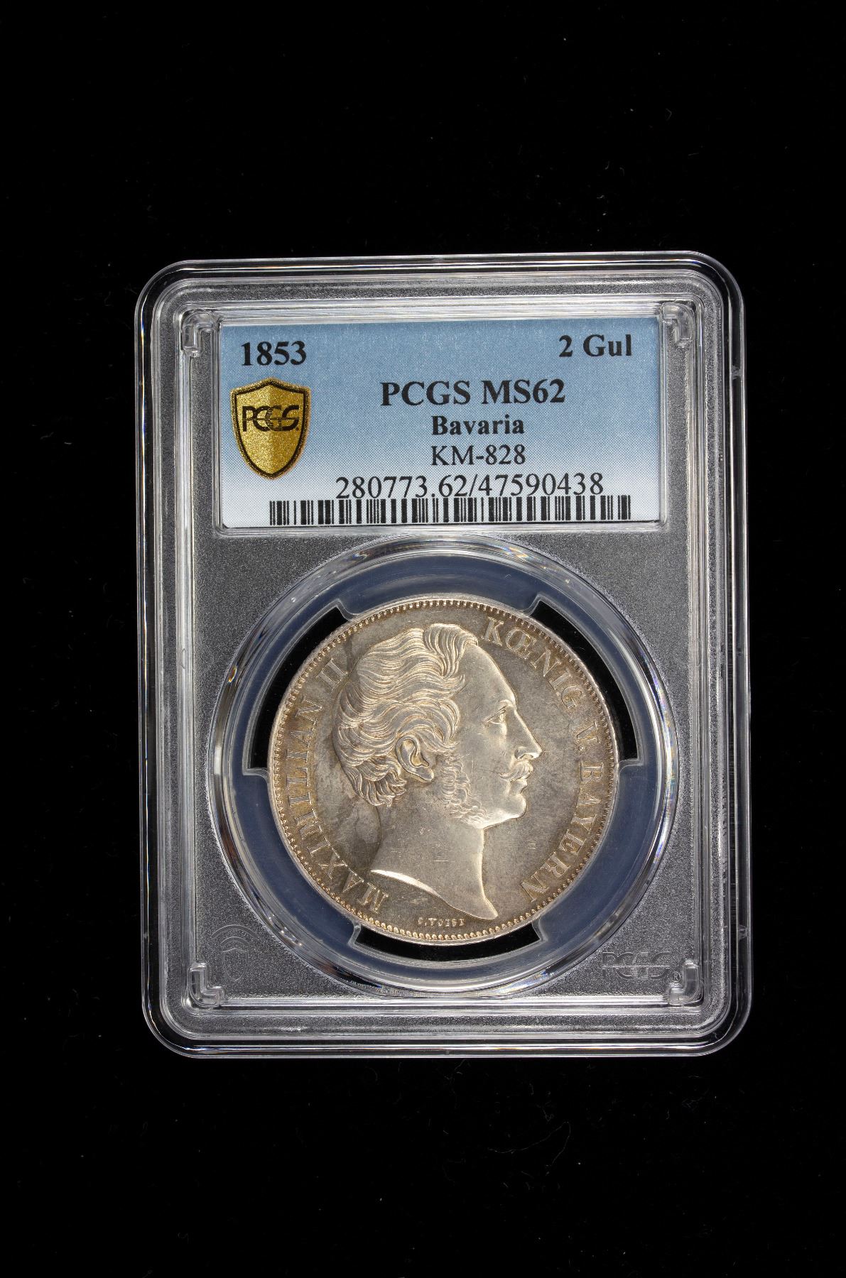 BAVARIA: Maximilian II, 1848-1864, AR 2 gulden, 1853, KM-828, Dav-600, an attractive mint state example, PCGS graded MS62.