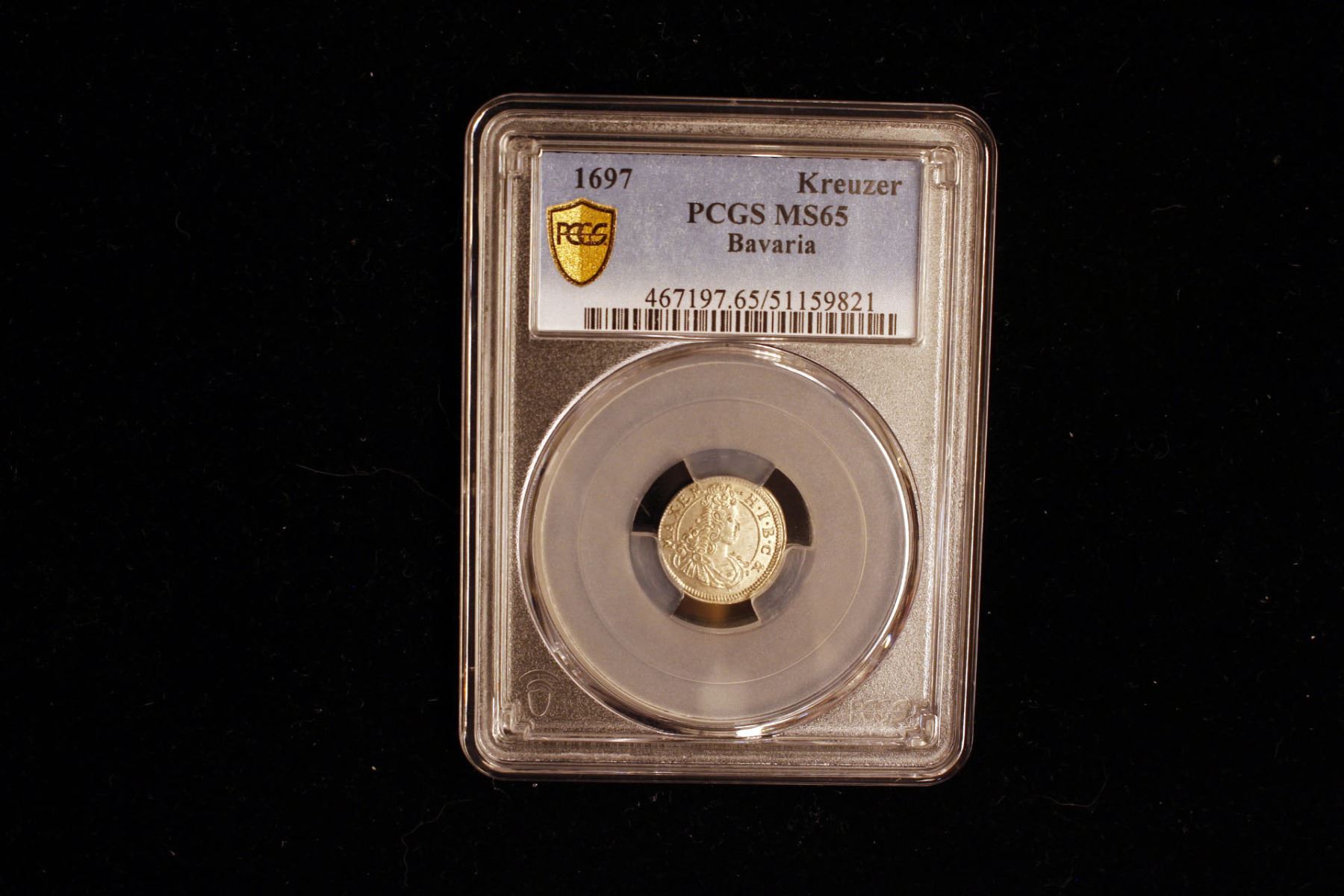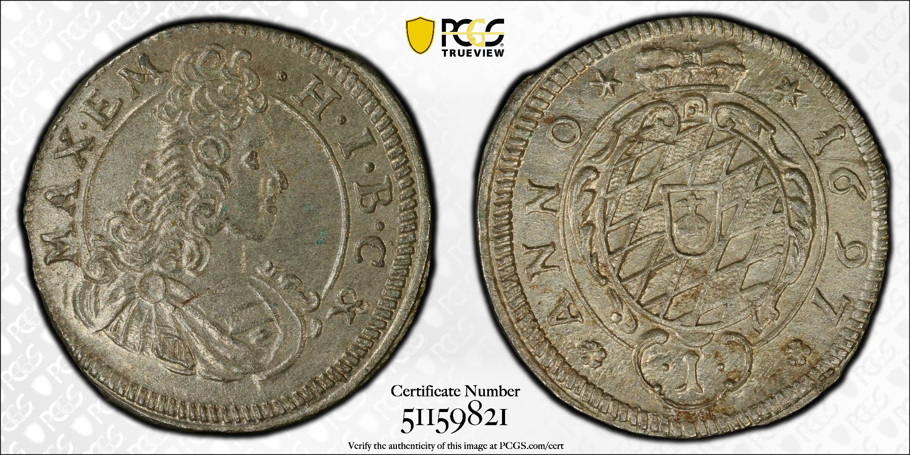 BAVARIA: Maximilian II Emanuel, 1679-1726, AR kreuzer, 1697, KM-366, a superb example, PCGS graded MS65.