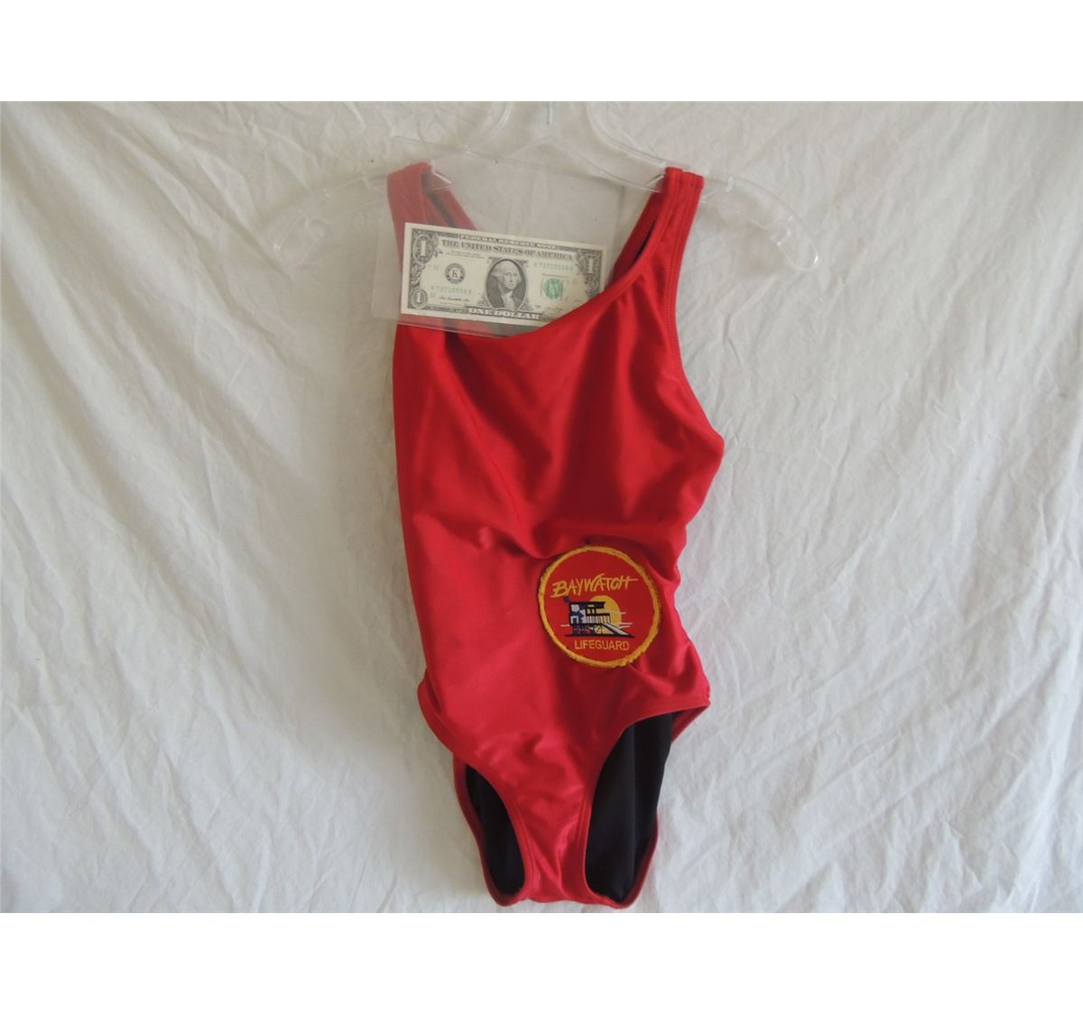 This is a Screen Used Baywatch Lifeguard swim suit. I am told this was worn by PAMELA ANDERSON, but there is no way to confirm that through any tags or markings. I should note that there is a stain where you would expect, so this has been worn.