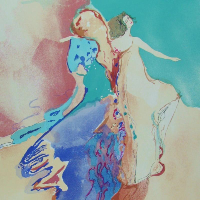 Jane Bazinet has emerged as an important American artist. Born in Basile, Louisiana, she began painting during the 60's. Bazinet produced her first graphics in the early 80's. Jane studied at Arizona State University for five years and continued studying art thereafter as an apprentice under the able tutelage of several painters. First exhibited in Scottsdale, Arizona, her paintings and prints soon found their ways into collections (both public and private) and galleries across the world. Although she has worked in numerous mediums, deftly treating a variety of themes, she is best known for her lyrical figurative work, which dwells at a mysterious crossroad between poetic realism and abstract expressionism. Her airy and whimsical women are adorned with flowing gowns in plush and tropical settings give off a feeling of relaxation and romance. She has been recognized as an artist with an extremely personal style and technique, which is romantic and contemporary. Her work is held in many public and private collections throughout the world and she has had many gallery shows throughout the United States and abroad. Her style and technique is contemporary as well as romantic and her works are very collectible.