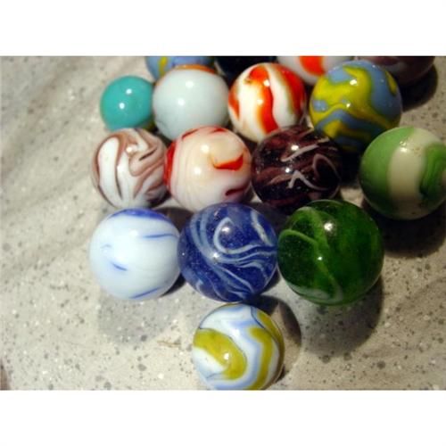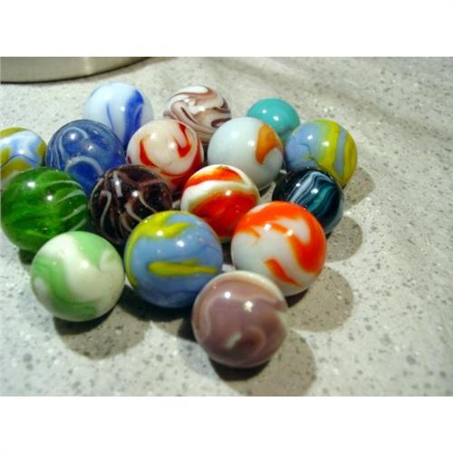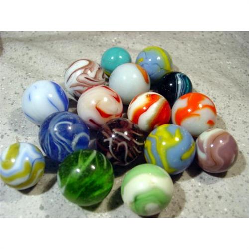 <b>ASSORTED MACHINE MADE, .</b> Lot of sixteen marbles. Variety of shooter machine mades. Includes German, Marble King, Vitro, Ravenswood. Many have damage. 27/32" to 1". Mint to Near Mint.