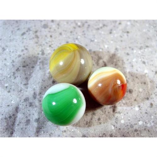 #1080 BB Marbles: 2 Master Marble, 1 Vitro<BR><BR><b>MASTER MARBLE/GLASS COMPANY, Assorted.</b> Lot of three marbles. Comet, 3/4", Mint (9.5). Comet, 21/32", Mint (9.9). Vitro Patch, 11/16", Mint (9.9).