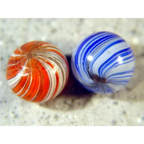 #98107 BB Marbles: 2 Onionskins <b>END OF DAY, Onionskin.</b> Lot of two marbles. Both are nice onionskins. 21/32" & Mint (9.9). 11/16" & Near Mint(+) (8.8).