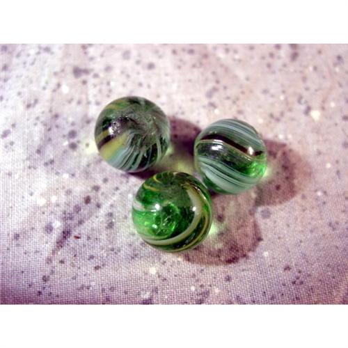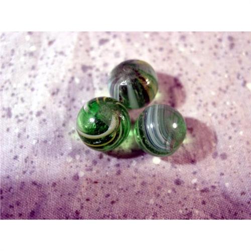 #98095 BB Marbles: 3 Banded Swirls <b>SWIRL, Banded.</b> Lot of three marbles. Variety of banded swirls, all in greens and white. 17/32". All are Mint.