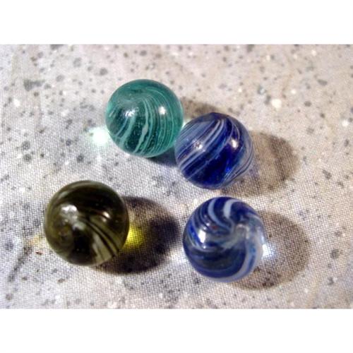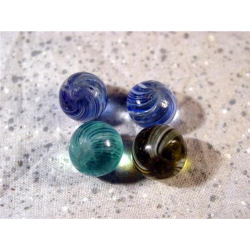 #98094 BB Marbles: 4 Banded Swirls <b>SWIRL, Banded.</b> Lot of four marbles. Variety of banded swirls. 17/32" to 9/16". All are Mint.