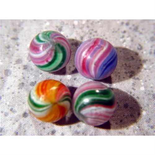 #1231 BB Marbles: 4 Onionskins<BR><BR><b>END OF DAY, Onionskin.</b> Lot of four marbles. Variety of colors. 19/32". Near Mint to Near Mint(-).
