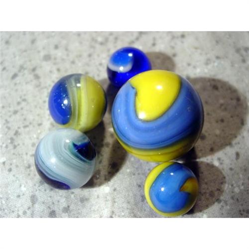 Mint (9.9-9.0). A marble that is in its original condition is identified as Mint. The surface is unmarked and undamaged. There may be some minor rubbing on the surface of the marble is as it came from the factory.