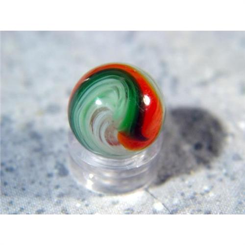 <b>AKRO AGATE COMPANY, Popeye corkscrew.</b> Red and green Popeye. A couple of tiny melt spots on it. Clarksburg WV, circa 1927-1935. 5/8". Mint (9.5).