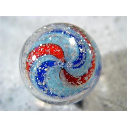 #1199 BB Marbles: Andy Davis Blizzard Solid Core<BR><BR><b>CONTEMPORARY HANDMADE, Andy Davis.</b> Solid core swirl with blizzard mica. Signed "a.D.". 1-1/2". Mint (9.9).