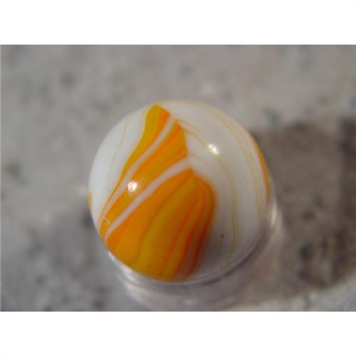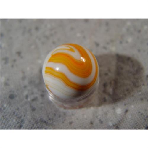 #98222 BB Marbles: Christensen Striped Opaque <b>CHRISTENSEN AGATE COMPANY, Striped opaque.</b> Two seam. Opaque white base. Electric orange swirls on the surface. Stunning. Cambridge OH, circa 1927-1929. 19/32". Mint (9.9).