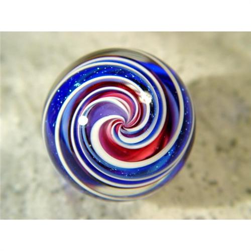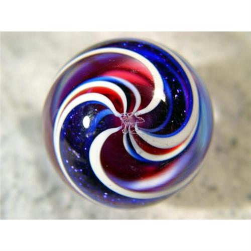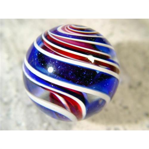 #1143 BB Marbles: Eddie Seese Solid Core<BR><BR><b>CONTEMPORARY HANDMADE, Eddie Seese.</b> Three layer solid core swirl. Signed "FES 02". Early Seese marble. 1-1/2". Mint (9.9).