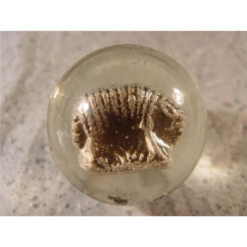 #98187 BB Marbles: Grazing Sheep Sulphide 8.4 <b>SULPHIDE.</b> Figure is a grazing sheep. Average detail to the figure. Some silvering air bubbles. Nicely centered. Several tiny subsurface moons. Germany, circa 1870-1915. 1-1/2". Near Mint (8.4).
