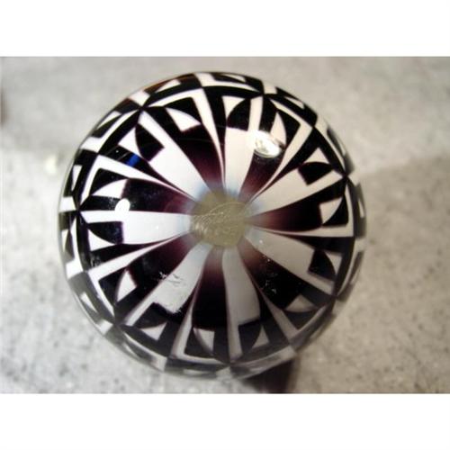 #1123 BB Marbles: Mark Matthews Panel Ponder<BR><BR><b>CONTEMPORARY HANDMADE, Mark Matthews.</b> "Panel Ponder". Transparent clear base. Subsurface layer is black and white geometric design created using the Graal technique. Signed "Matthews 2003". 2-7/8". Mint (9.9).