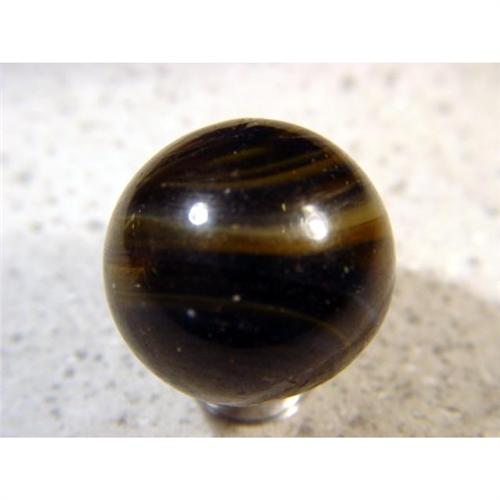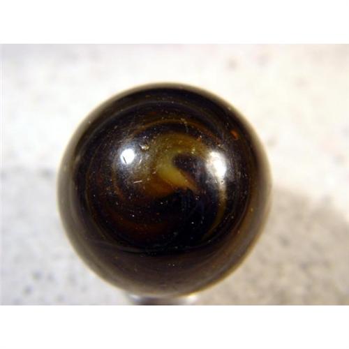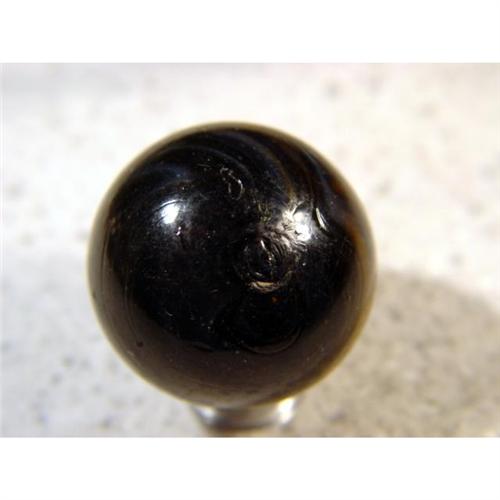 <b>TRANSITIONAL, Melted pontil.</b> Outstanding marble. Very dark transparent brown with white handgathered spiral. Nicely melted pontil. Superb. United States, circa 1880-1910. 1-5/16". Mint (9.9).