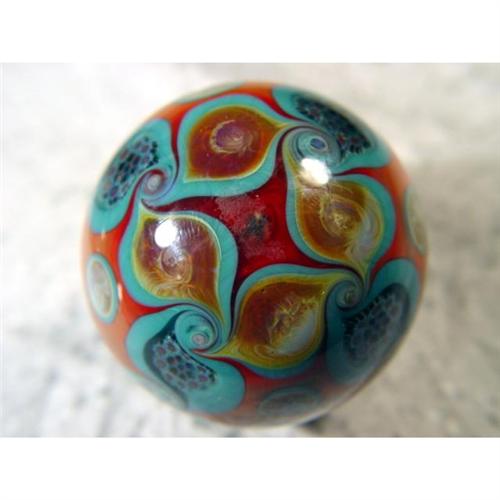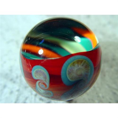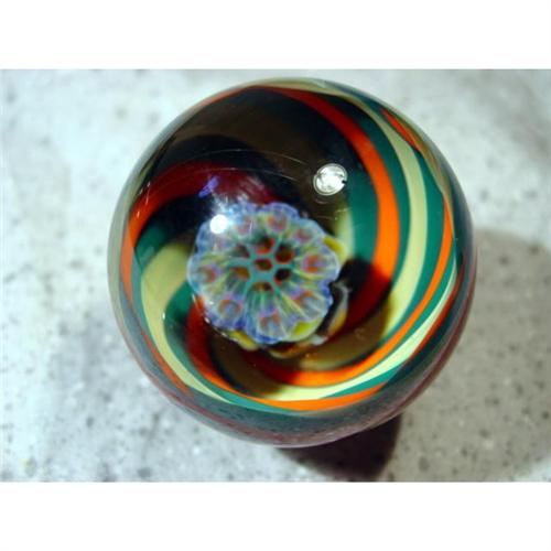 #1169 BB Marbles: Rajesh Kommineni Vortex Floral<BR><BR><b>CONTEMPORARY HANDMADE, Rajesh Kommineni.</b> Very nice, deep Vortex with a floral floating in it. Signed "RK 05". 1-15/16". Mint (9.9).