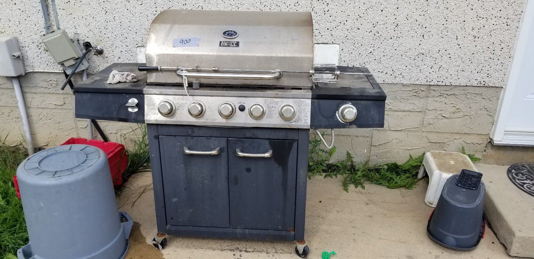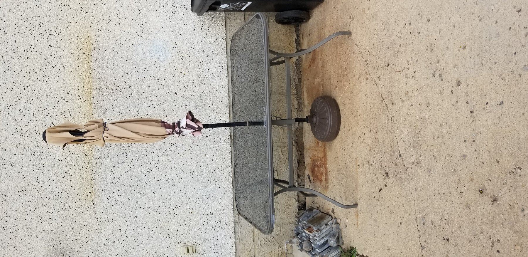 BBQ AND GLASS PATION TABLE W/ UMBRELLA