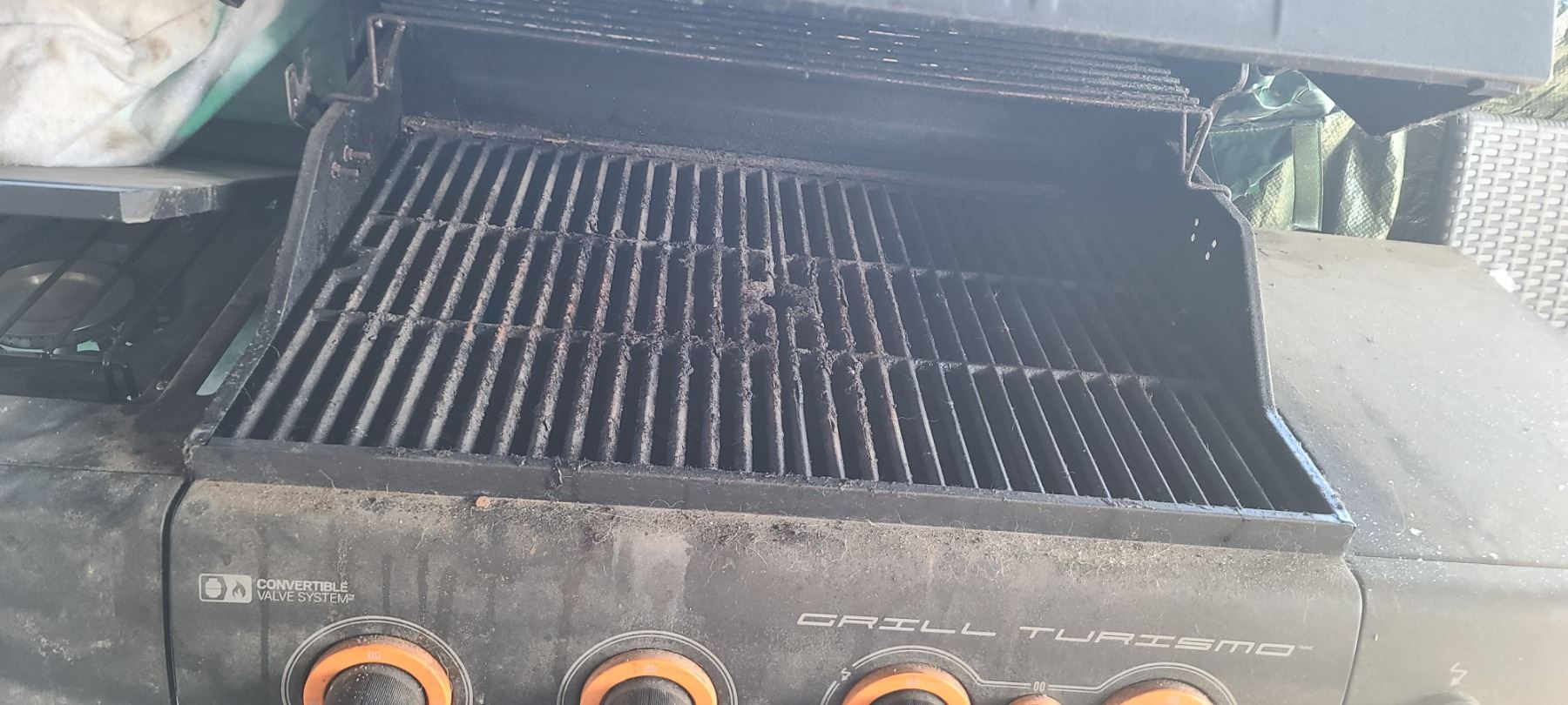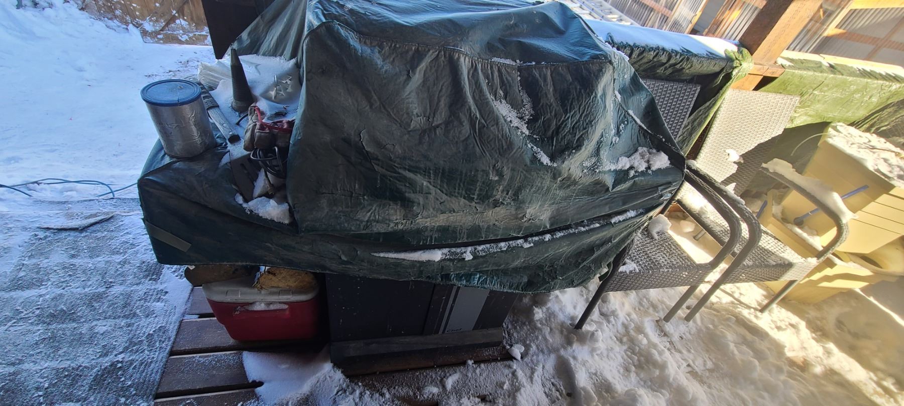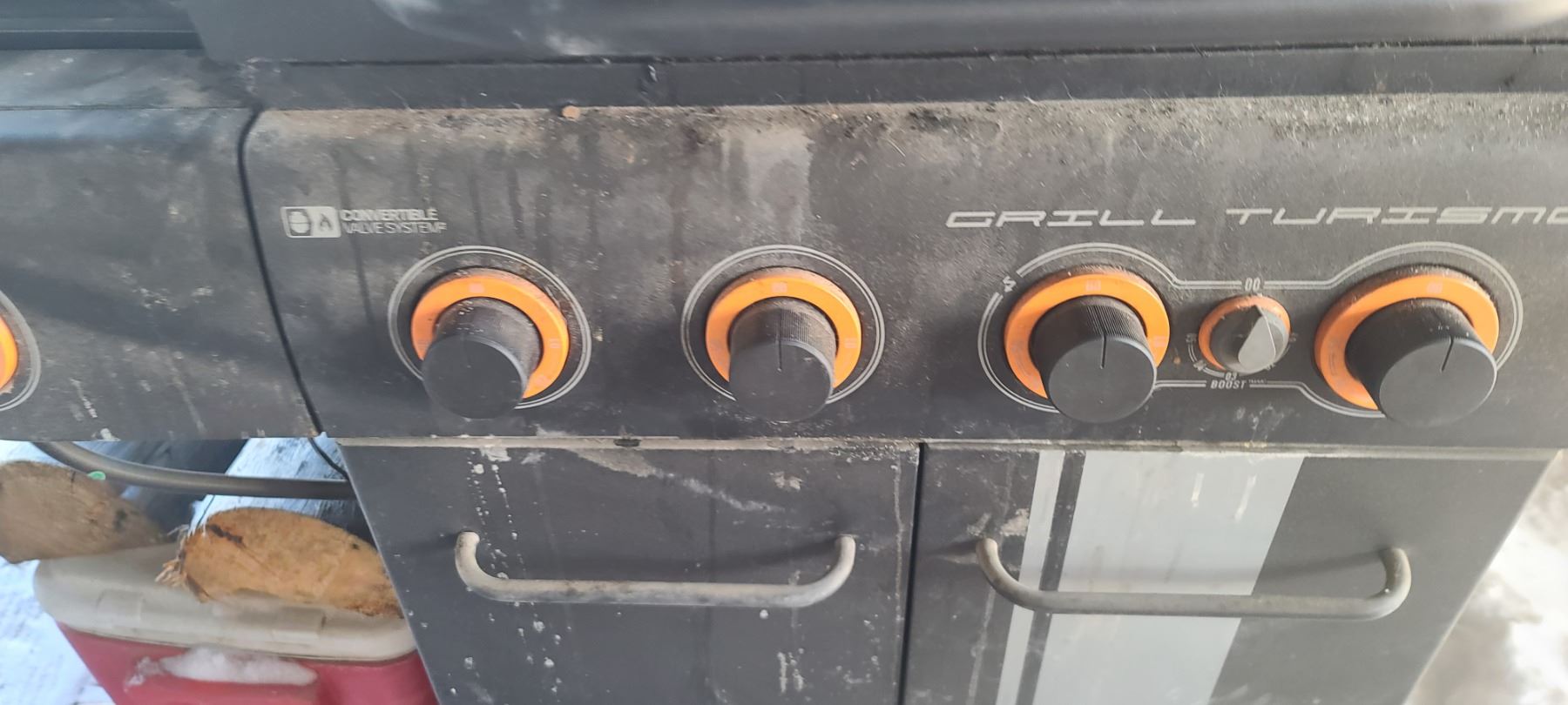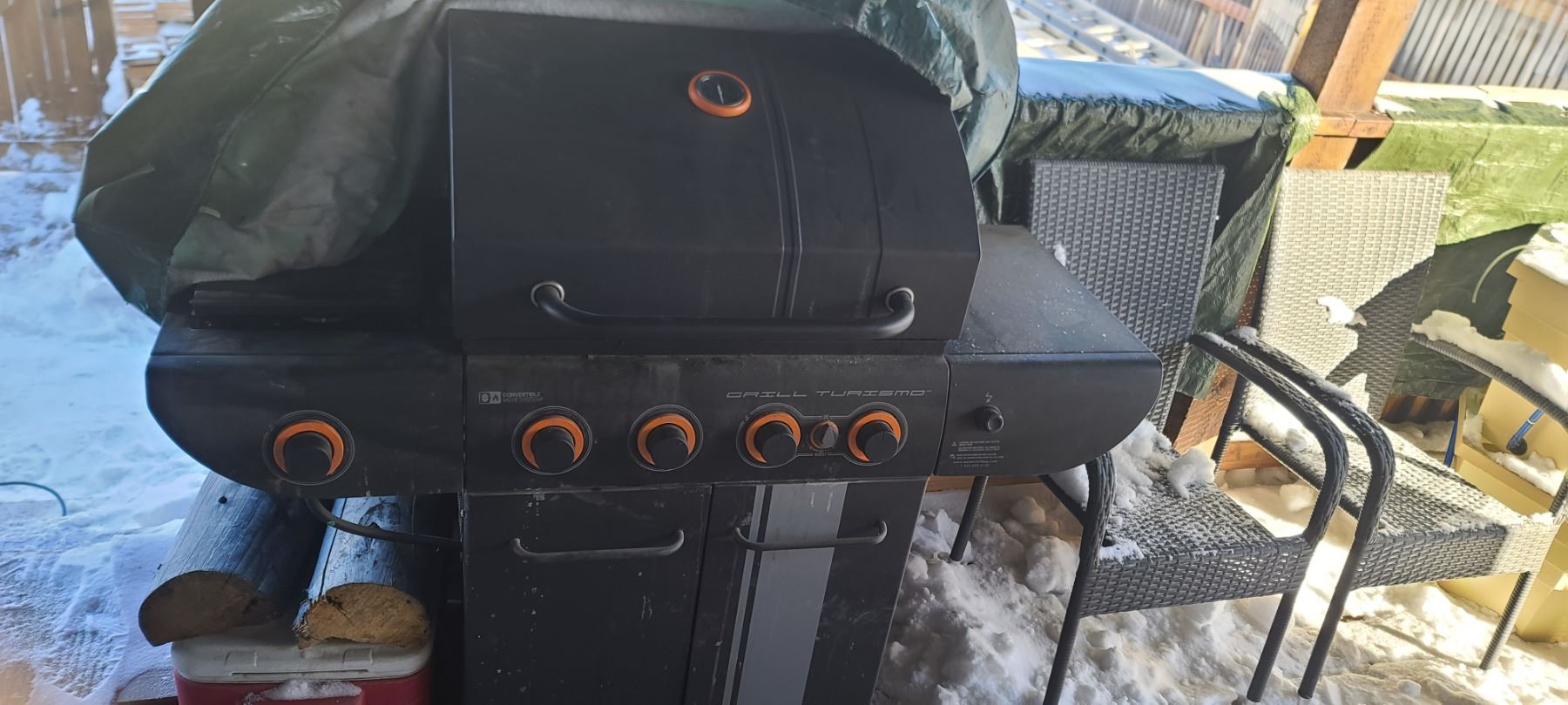 BBQ, PLANTERS, SAT DISH AND PATIO TABLE C/W 4 CHAIRS