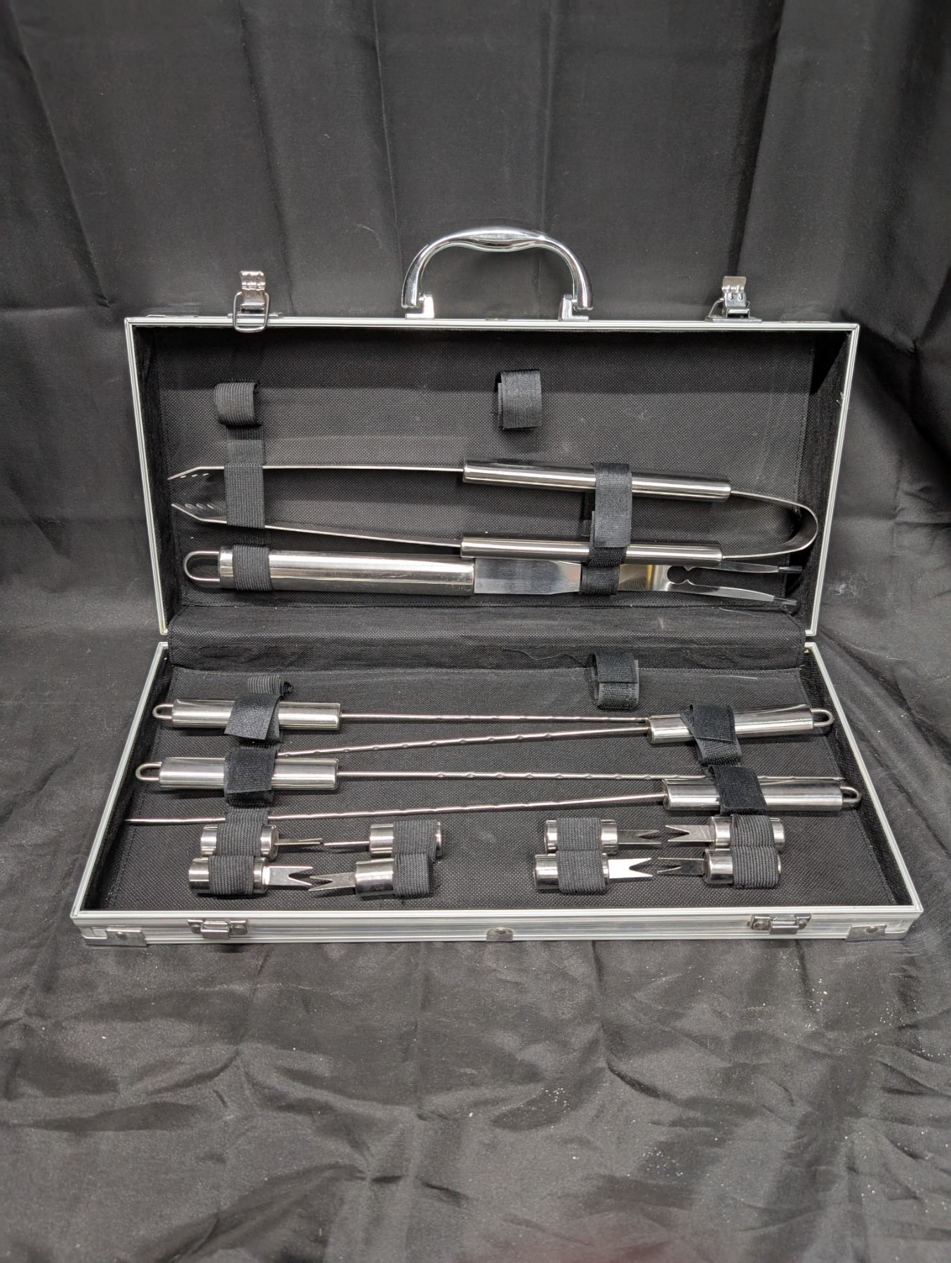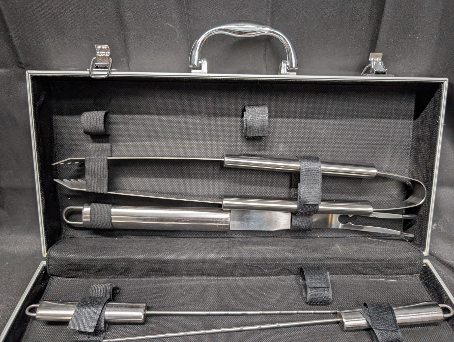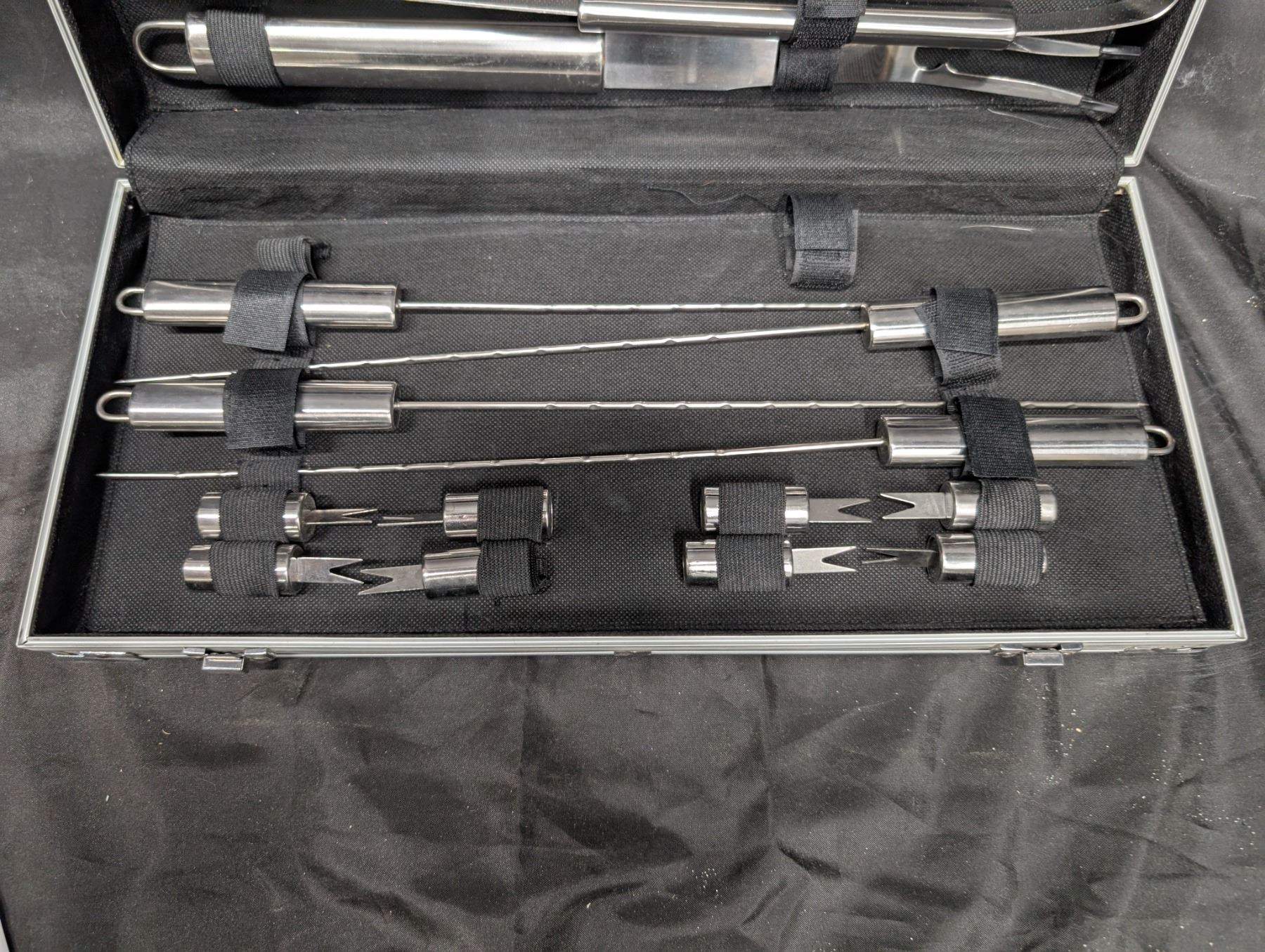 BBQ Set Tongs, Skewers, Etc. w/ Case (All Great Condition)