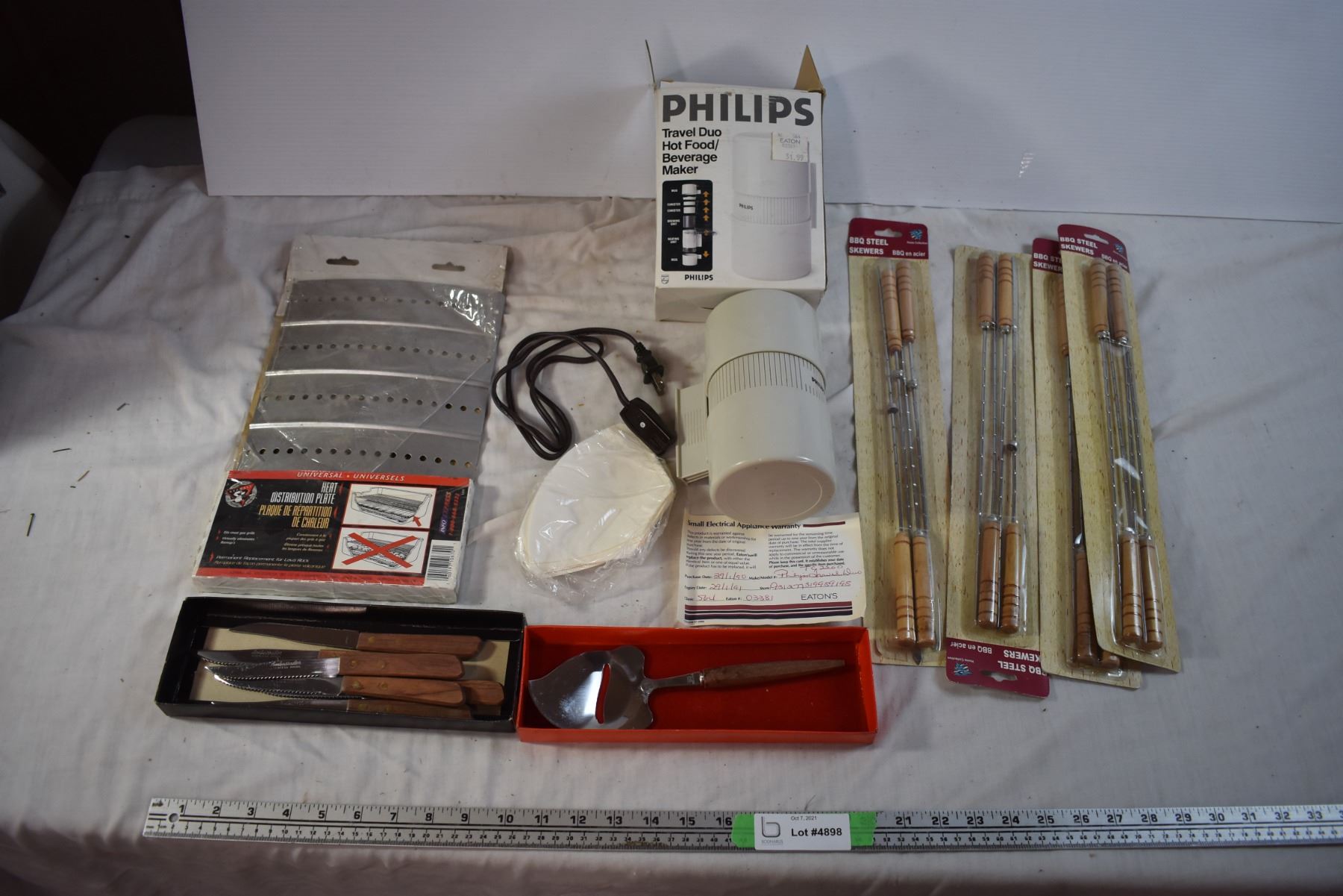 BBQ Skewers, Cheese Plane, Travel Food and Beverage Maker, and Heat Distribution Plate
