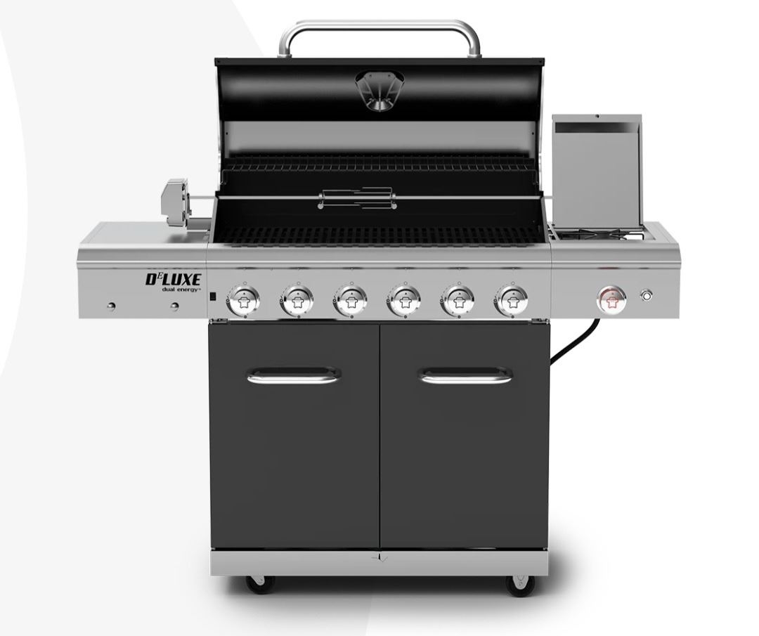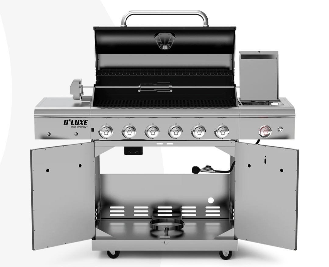 Nexgrill Deluxe dual energy model 720- 0896b, 75,000 total BTUs, 6 stainless steel main burners, 563.55 sq. in. of primary cooking space, Natural Gas Convertible, New