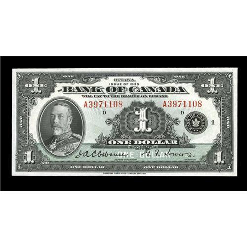 <B>BC-1 $1 1935</B></I><BR>A second series A $1 English Text example grading <B>About Uncirculated.</B></I><BR><I>From The Halton Lake Collection</B></I>