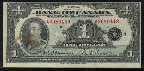 BC-1 1935 $1 Letter "A3089449" EF with a light yellow satin on the left.