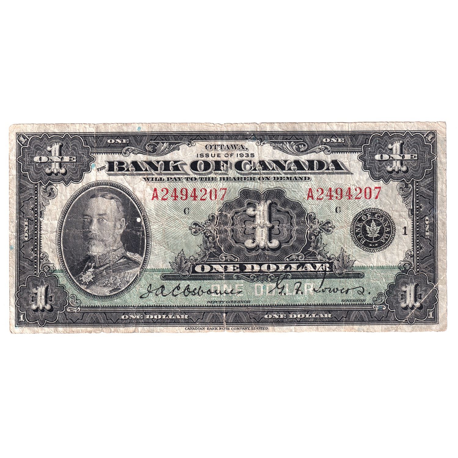 BC-1 1935 Canada $1 Osborne-Towers, Check Letter C, SN: A2494207. Please see images for quality