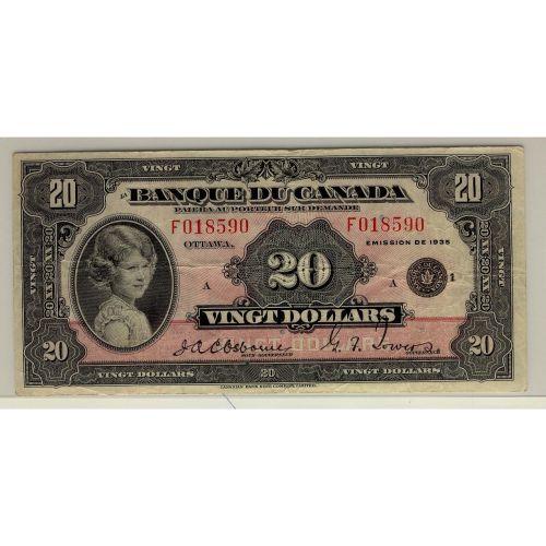 BC-10 1935 $20 #F018590 French text CCCS VF-20. Nice and clean