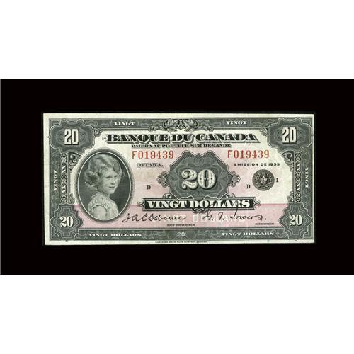 <B>BC-10 $20 1935</B></I><BR>A nice example of the very scarce French Text $20. <B>Very Fine,</B></I> with good color for the grade.<BR><I>From The Wellington Collection</B></I>