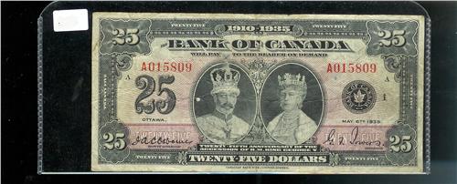 BC-11 1935 $25 English text A015809, Well centered! A decent example. Fine with light writing on bottom margin of the obverse