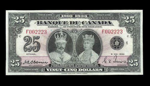 BC-12 1935 $25 French text F002223 CCCS EF-45. Bright example with excellent centering. Very rare in this condition.