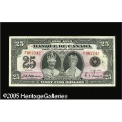<B>BC-12 $25 1935</B></I><BR>This $25 note marked the Silver Jubilee of the reign of King George V, with this French example sporting a few folds and a trivial edge nick at top center. <B>Very Fine-Extremely Fine.</B></I> Lot:15519
