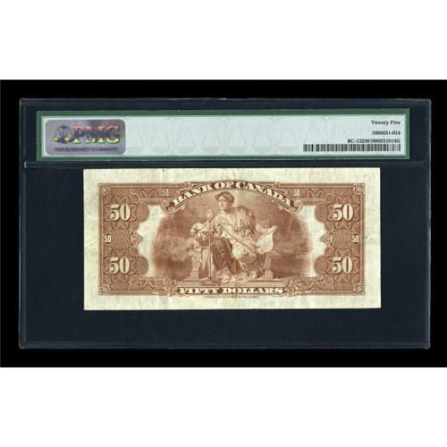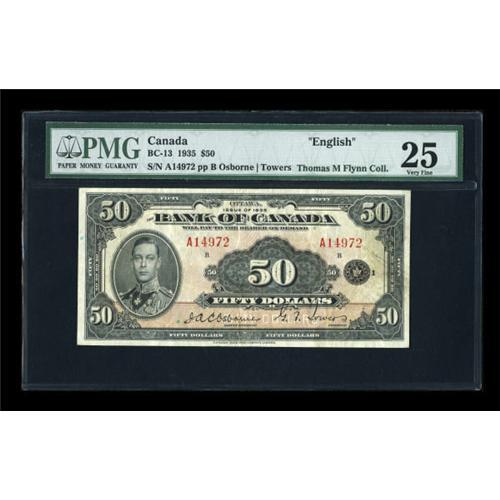<B>BC-13 $50 1935</B></I><BR> A pleasing circulated example of this very scarce denomination. This piece bears the English Text. PMG <B>Very Fine 25, </B></I>with good color and body for the grade.<BR><I>From The Thomas M. Flynn Collection</B></I><BR><BR><b>Shipping:</b> Coins & Currency (<a target="_blank" href="http://www.heritageauctions.com/common/shipping.php">view shipping information</a>)