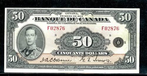 BC-14 1935 $50 French text F02876 EF+++, A nice and very scarce example.