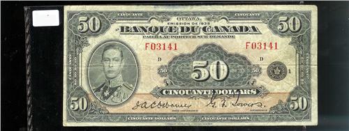 BC-14 $50 1935 "French text" F03141 F/F+, rarely offered in this affordable grade.