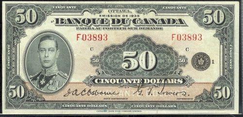 BC-14 $50 1935 French text F03893 about EF, fairly well centered and quite clean. A rare and attractive example.