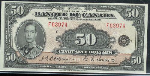 BC-14 $50 1935 "French text" F03974 Original choice uncirculated! Wow! Simply amazing! Bright with vibrant colours. Don't miss this opportunity to acquire one of the rarest note in this auction. Despite all catalogues, worth a premium bid! Ext