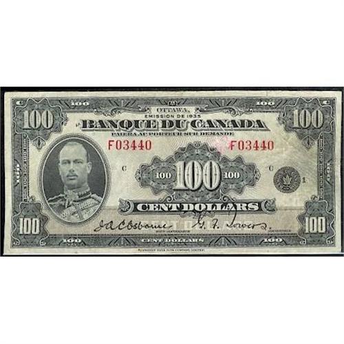 BC-16 $100 1935 "French text" F03440 F/VF, light crayon mark but not distracting. Well centered and quite bright for the grade. Rare!