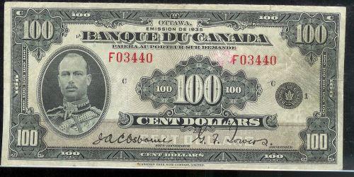 BC-16 $100 1935 "French text" F03440 F/VF, light crayon mark but not distracting. Well centered and quite bright for the grade. Rare!