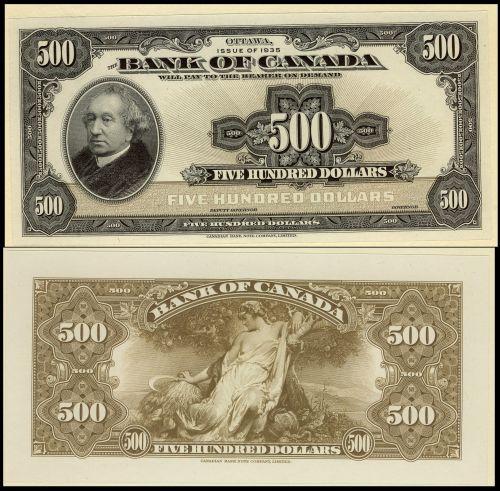 BC-17 (Face and Back proofs). 1935 $500 English. This pair of proofs is from the ABN Co. archive auction of 1990. They are mounted on card stock with pencilled control numbers on the back. Choice Unc. Rarely offered! Only 9 examples are known.