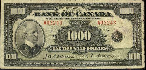 BC-19 1935 $1000 English text A03243 Fine with a few edge nicks. An affordable example rarely offered in this grade. Despite all catalogue values,