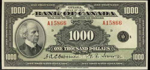 BC-19 1935 $1000 English text A15866 Gem uncirculated! CCCS UNC-65. A very nice and sought after note.
