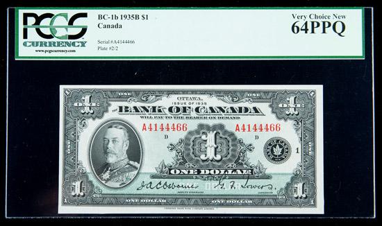 BC-1b 1935B $1. PCGS Very Choice New 64PPQ. A near-Gem example with bold embossing and terrific eye appeal.