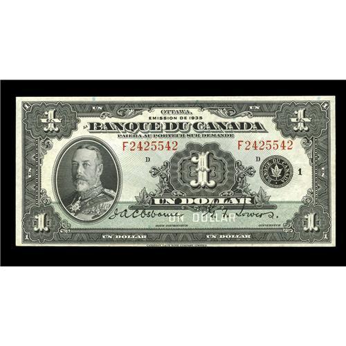 <B>BC-2 $1 1935</B></I><BR>A circulated but still high end French Text $1. <B>Extremely Fine.</B></I><BR><I>From The Halton Lake Collection</B></I>