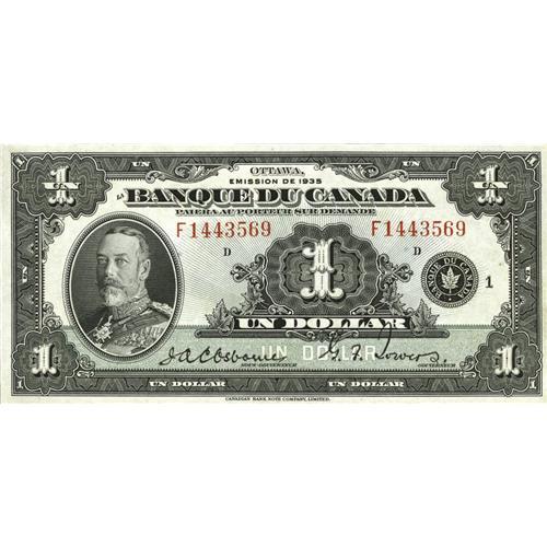 <B>BC-2 $1 1935</B></I><BR>A nice <B>About Uncirculated</B></I> French Text $1.<BR><I>From The Halton Lake Collection</B></I>