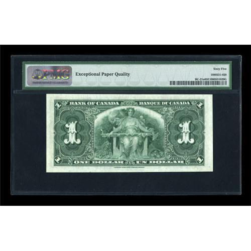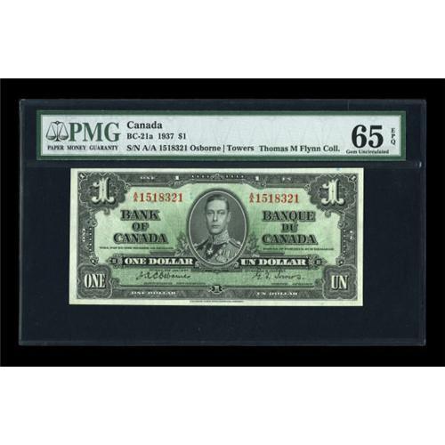 <B>BC-21a $1 1937</B></I><BR> A perfectly printed and exceptionally well centered example ensconced in a PMG <B>Gem Uncirculated 65 EPQ </B></I>holder.<BR><I>From The Thomas M. Flynn Collection</B></I><BR><BR><b>Shipping:</b> Coins & Currency (<a target="_blank" href="http://www.heritageauctions.com/common/shipping.php">view shipping information</a>)