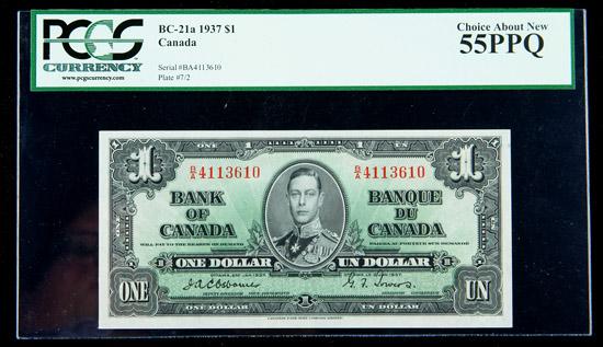 BC-21a 1937 $1. PCGS Choice About New 55PPQ. A single fold limits the grade.