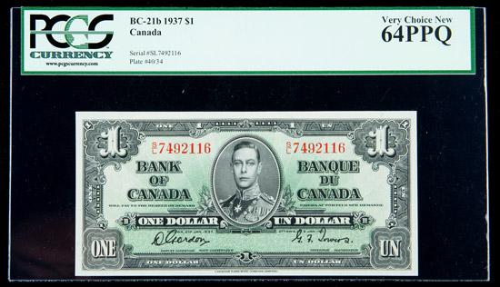 BC-21b 1937 $1. PCGS Very Choice New 64PPQ. The third of three consecutive, limited only by slightly less-than-Gem margins.