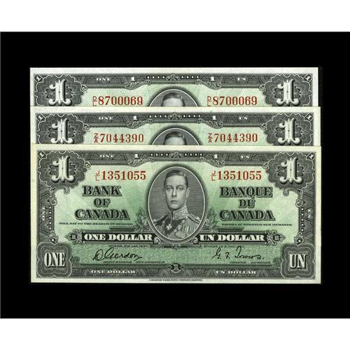 <B>BC-21c $1 1937. Three Examples.</B></I><BR>The prefix letters are Z/A; D/L; and J/L. for these <B>Choice Crisp Uncirculated</B></I> triplets.<BR><I>From The Halton Lake Collection</B></I>