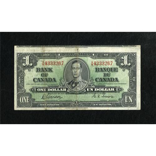 <B>BC-21c $1 1937</B></I>.<BR> This is a nice Canadian cutting error with a slice of the previous note on the sheet showing along the top edge. Four autographs are on the back. Are they Canadian numismatists? <B>Very Fine.</B></I><BR><BR><b>Shipping:</b> Coins & Currency (<a target="_blank" href="http://www.heritageauctions.com/common/shipping.php">view shipping information</a>)